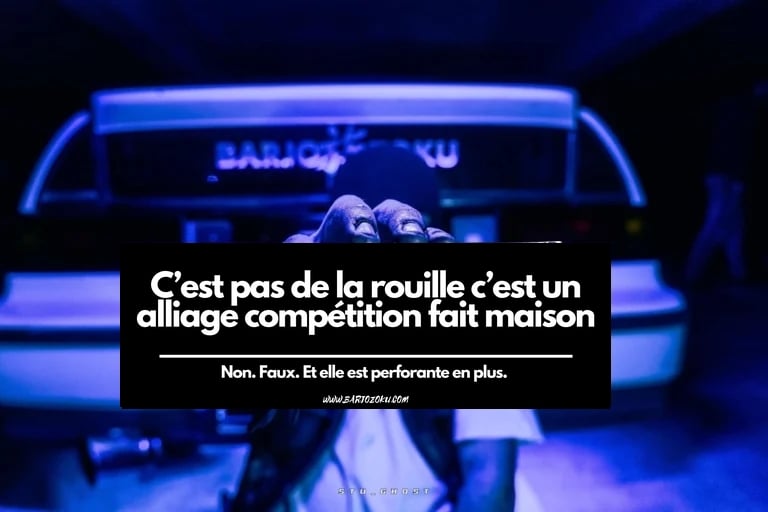 C'est un alliage de ouf, c'est du métal que tu mixes avec de la flotte, un peu de boue et le mousse. Tu laisses agir pendant quelques années et tu va voir que ca fais une réaction de ouf ou le métal s'allège. Ouais de la rouille de compétition, c'est péjoratif mais on est pas loin.